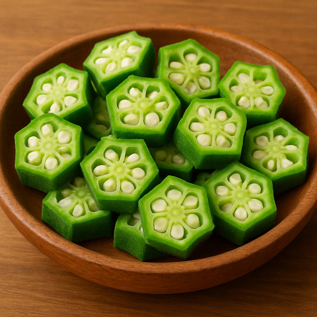 - Polyvalent en Cuisine : Le gombo découpé est idéal pour les soupes, les ragoûts ou les sauces. Son goût doux et sa texture agréable s’adaptent à de nombreuses préparations..